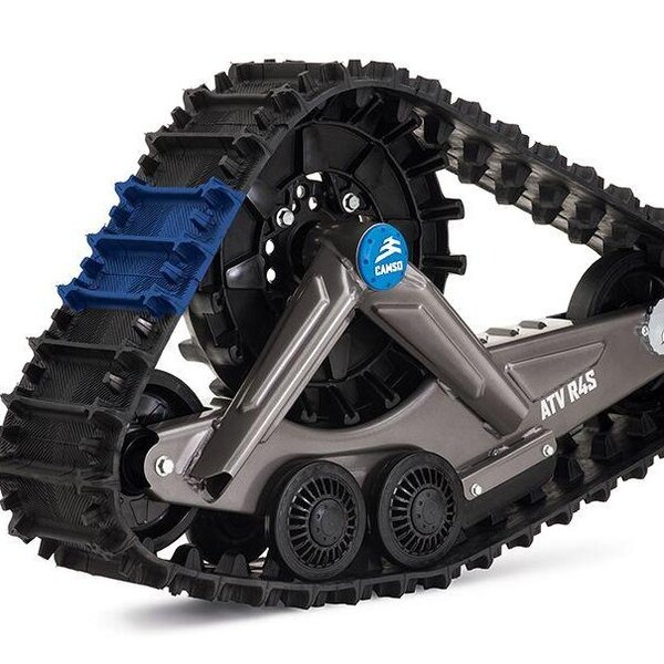 Système de chenilles Camso X4S pour vtt et côte à côte de petite cylindré. Le Camso X4S est la nouvelle génération de système de chenilles, qui offre le nec plus ultra en matière de polyvalence, de stabilité et de maniabilité, sur n'importe quel terrain et ce toute l'année. * Technologie Flex-Track de Camso. * Boitier de roulements double à bain d'huile. * Châssis en acier.