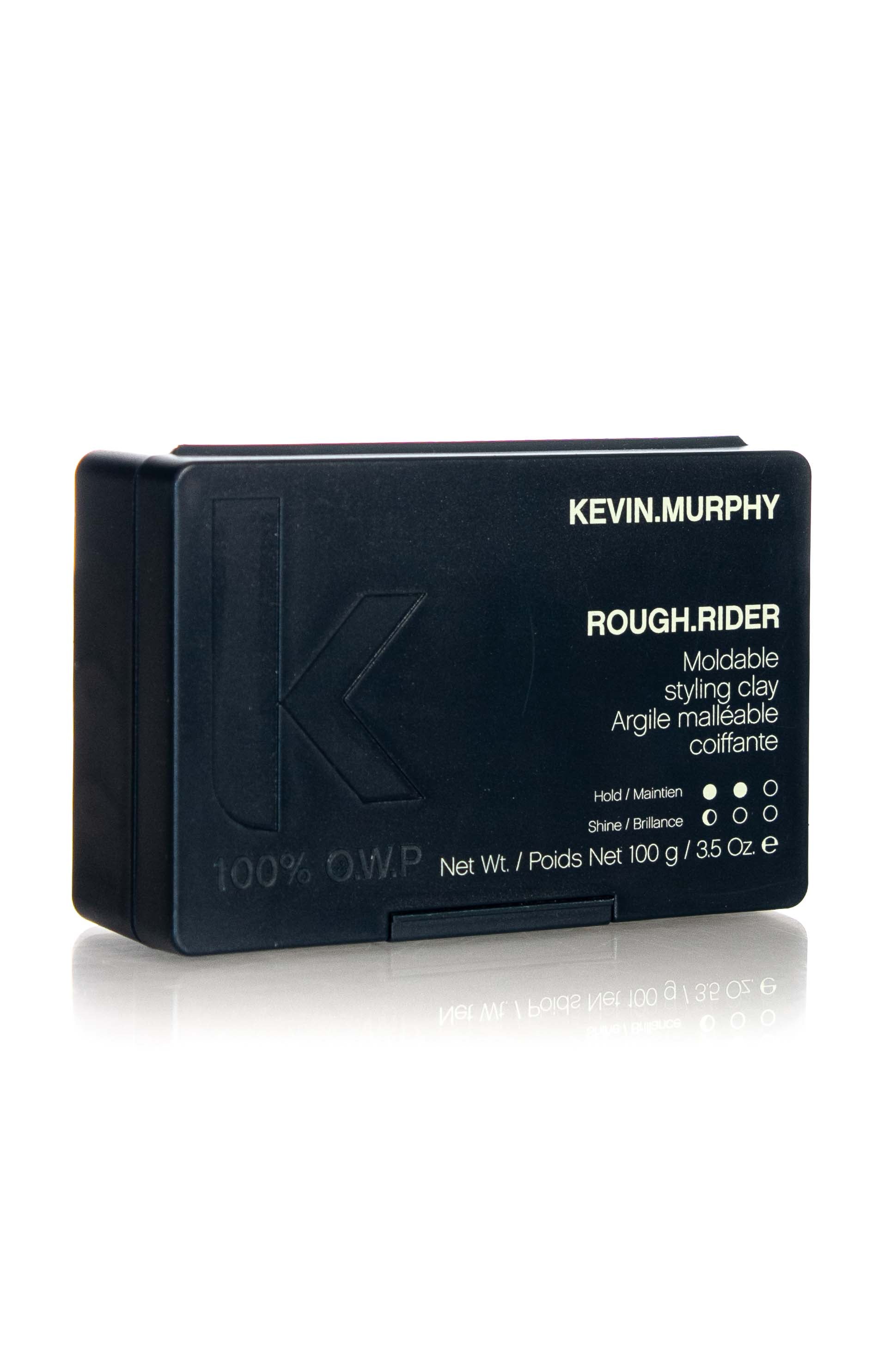 KEVIN MURPHY ROUGH.RIDER. A strong-hold styling clay that helps give hair soft texture and definition with a slick matte finish. Can be used on all hair types and a variety of lengths to deliver a roughed up look. Infused with soya bean extracts and golden bamboo, the antioxidant-rich formula helps seal the ends of hair, adds hydration and.
